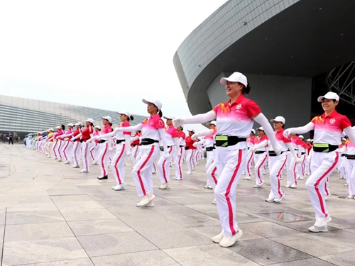 在奧體中心開闊的平臺上,群眾們開展健步走活動,他們踏著快樂的節(jié)拍,每個(gè)人的臉上都洋溢著笑容,收獲著滿滿的幸福。