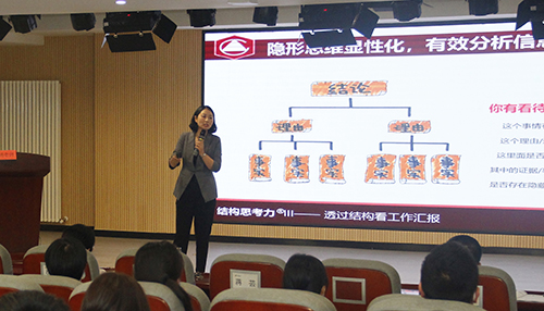 “思考是人類最大的樂趣”。為提高員工思考和表達能力,建立彼此交流時共同的思維和語言平臺,提高組織溝通效率,10月23日,集團邀請楊秀萍老師為鄭地英才班講授《透過結(jié)構(gòu)看工作匯報》,集團總部及子公司共150余名員工參加。