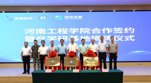 會上,河南工程學(xué)院、管城經(jīng)濟技術(shù)開發(fā)區(qū)管理委員會、河南鄭地產(chǎn)城融合建設(shè)發(fā)展有限公司共同簽署產(chǎn)學(xué)研合作協(xié)議,并現(xiàn)場為河南工程學(xué)院校外實習(xí)基地、產(chǎn)學(xué)研合作基地、就業(yè)基地揭牌。