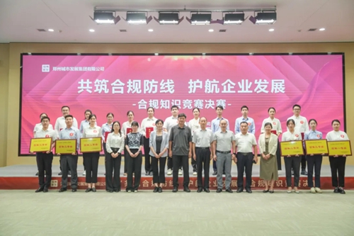 為貫徹落實習(xí)近平法治思想,奮力開創(chuàng)法治國企建設(shè)新局面,8月30日,集團在金岱科創(chuàng)城商務(wù)服務(wù)中心舉辦“共筑合規(guī)防線、護航企業(yè)發(fā)展”合規(guī)知識競賽決賽。鄭州市國資委二級調(diào)研員劉學(xué)銀、法規(guī)處處長文鋒,集團黨委書記、董事長萬永生,集團領(lǐng)導(dǎo)張華,城發(fā)產(chǎn)城董事長、總經(jīng)理吉獻亮等領(lǐng)導(dǎo)出席本次活動。