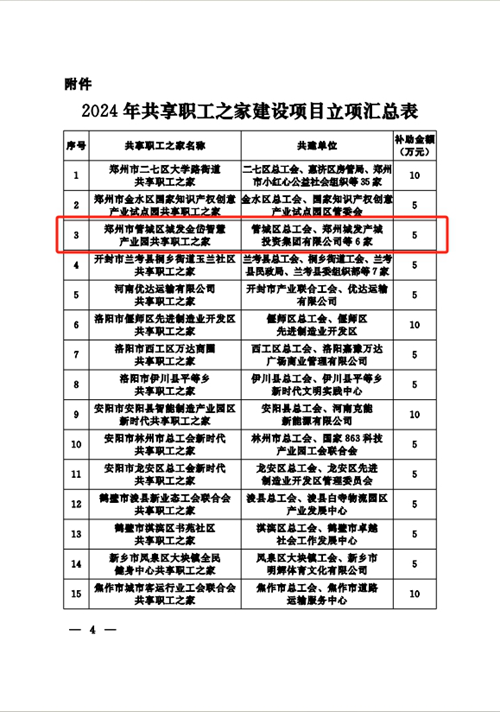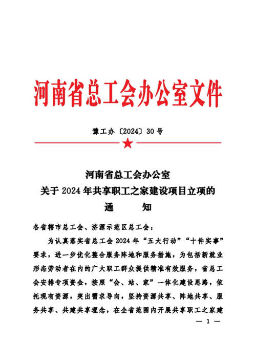 近日,河南省總工會發(fā)布《關(guān)于2024年共享職工之家建設(shè)項目立項的通知》,決定對城發(fā)金岱智慧產(chǎn)業(yè)園共享職工之家等32個共享職工之家建設(shè)項目進(jìn)行立項,并對城發(fā)金岱智慧產(chǎn)業(yè)園共享職工之家給予資金補(bǔ)助,鄭州市僅有三家職工之家獲得立項,這是城發(fā)金岱智慧產(chǎn)業(yè)園共享職工之家建設(shè)運(yùn)營后取得的第一份殊榮。