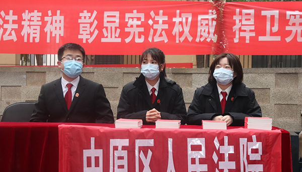 此次宣傳以“尊崇憲法 學(xué)習(xí)憲法 遵守憲法 維護(hù)憲法 運(yùn)用憲法”為主題,通過懸掛條幅、擺放展架、發(fā)放宣傳冊(cè)、法律讀本、現(xiàn)場(chǎng)說法等方式,重點(diǎn)宣傳習(xí)近平總書記全面依法治國新理念新思想新戰(zhàn)略,黨的十九屆五中全會(huì)精神,新中國憲法發(fā)展歷程、憲法的地位和作用,憲法的基本原則和主要條款以及民法典、掃黑除惡、防詐騙、防范非法集資等相關(guān)內(nèi)容。