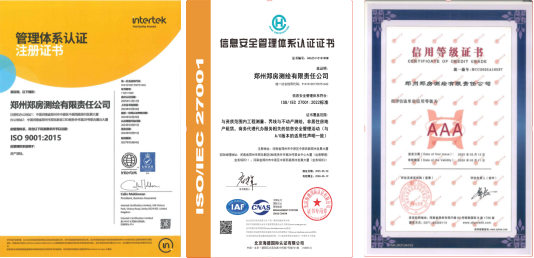 喜報(bào)!鄭房測繪公司獲評三項(xiàng)體系認(rèn)證和省級AAA信用等級