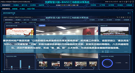 鄭州地產(chǎn)集團投資管理有限公司以河南省人民醫(yī)院地下智能停車及綜合開發(fā)建設(shè)項目作為BIM技術(shù)應(yīng)用試點項目,以黨建智慧大腦作為引領(lǐng),通過BIM5D技術(shù),大大提升了項目部對現(xiàn)場安全文明標(biāo)準(zhǔn)化施工、過程質(zhì)量控制、圖紙深化、施工方案及技術(shù)交底、進度工期控制、成本管控等多方面的管理水平,不僅保障施工安全,更能保障建筑質(zhì)量。