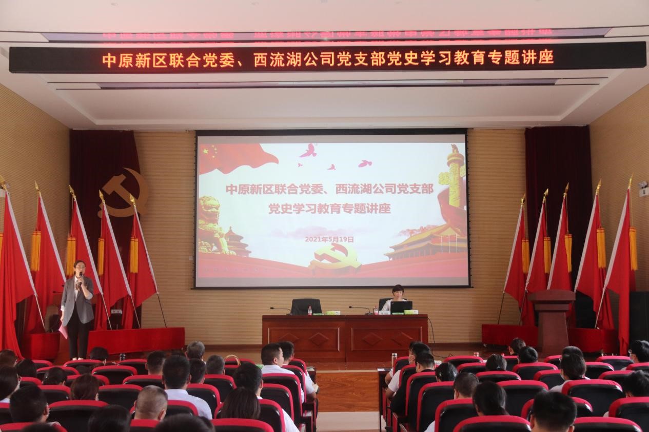 黨史是最好的教科書和營養(yǎng)劑,在中國共產(chǎn)黨成立100周年之際,為扎實開展好黨史學習教育,引導(dǎo)廣大黨員干部職工知史愛黨、知史愛國,進一步樹牢“四個意識”、堅定“四個自信”、做到“兩個維護,推動黨史學習教育取得實效,5月19日下午,中原新區(qū)聯(lián)合黨委、西流湖公司黨支部邀請河南省委黨校黨史教研部副主任、副教授楚向紅老師開展黨史學習教育專題講座。公司領(lǐng)導(dǎo)班子、西流湖公司、鄭地發(fā)展以及中原新區(qū)聯(lián)合黨委黨員職工代表共計150余人參加講座。